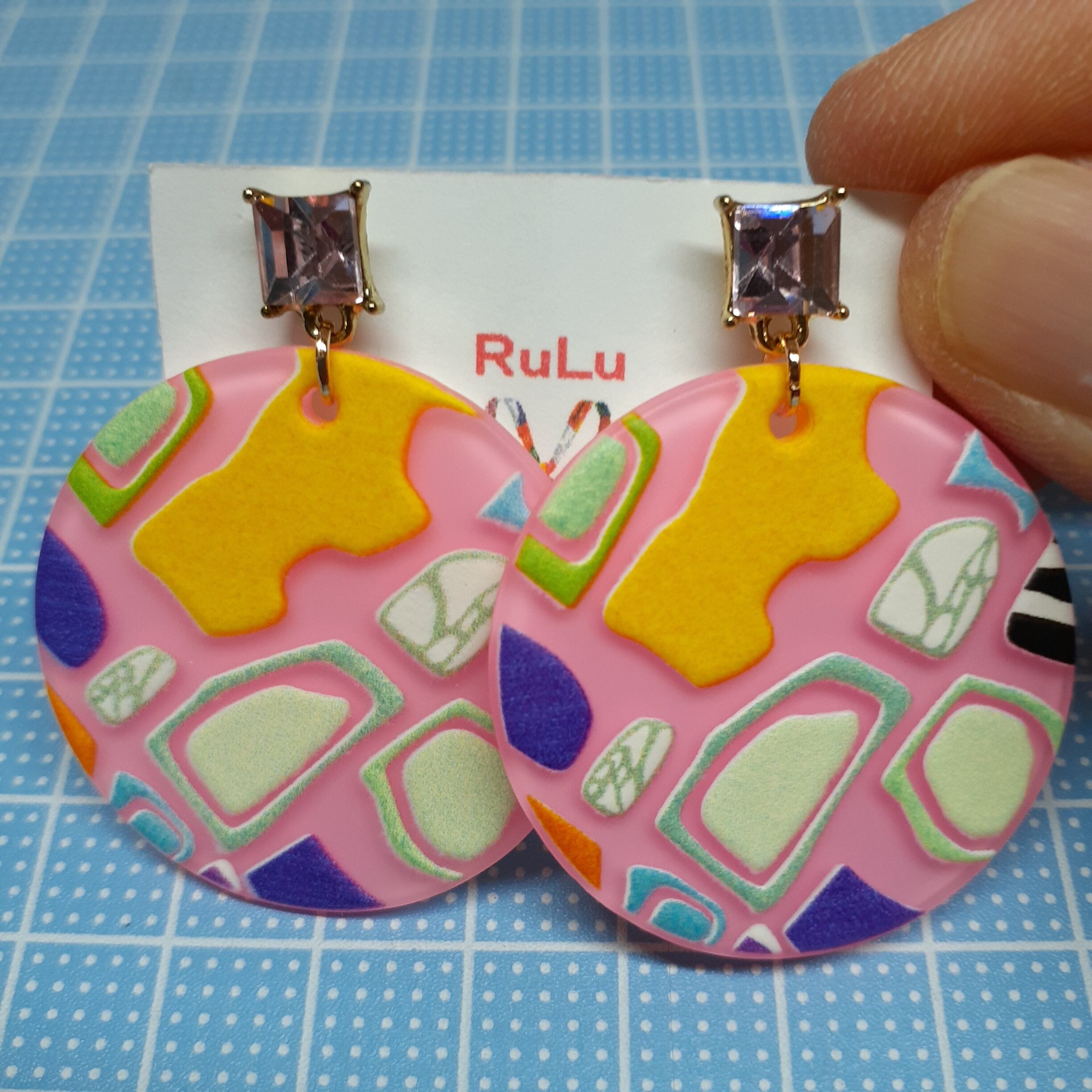 カラフルプレートピアス ピンク