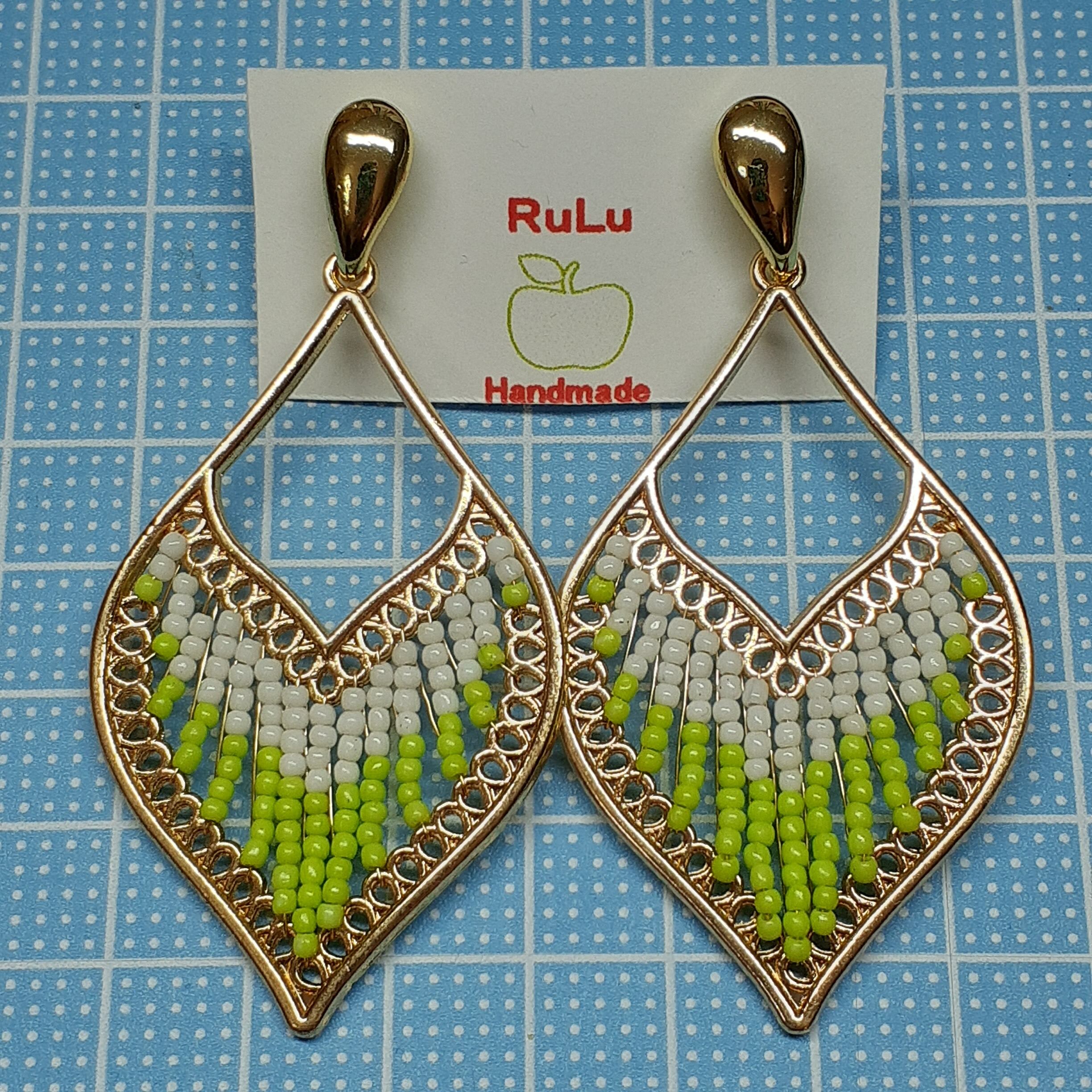 ビーズデザインピアス グリーン